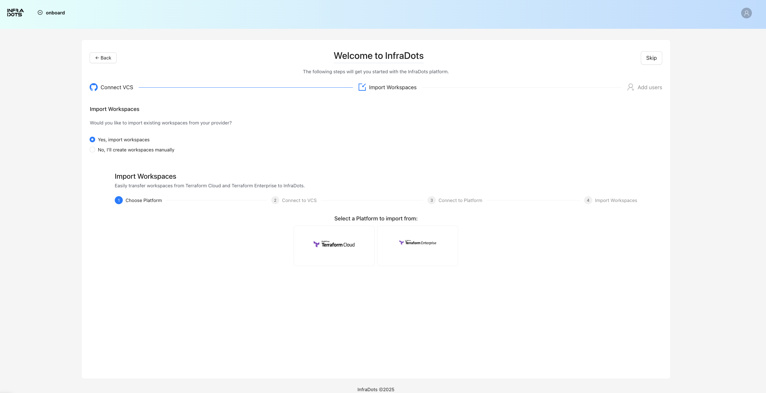 InfraDots Platform allows you to easily migrate your workspaces from Terraform Cloud.